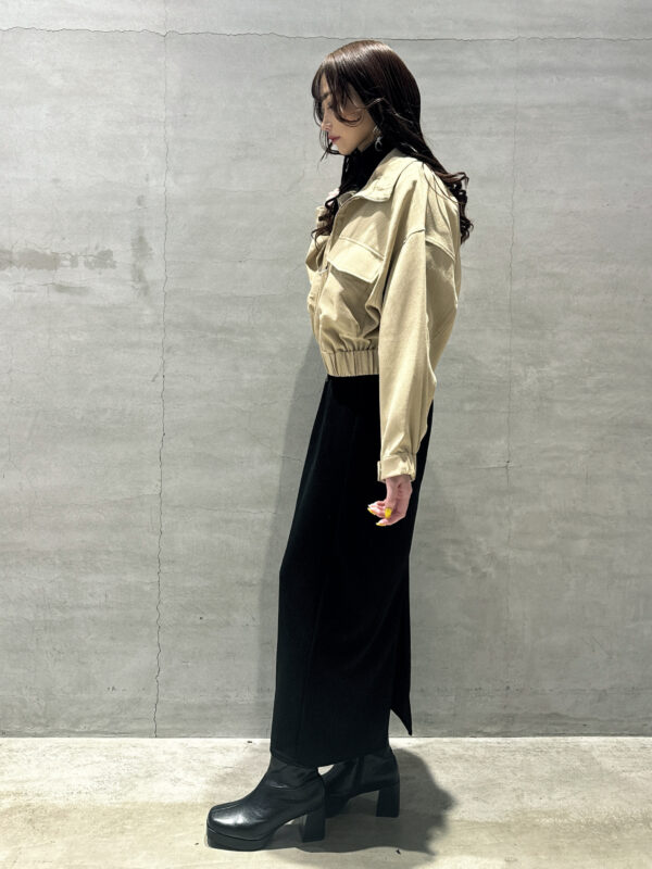 短すぎず、長すぎない丈感と程よく丸みのあるシルエットでボトムスを選ばない一着です。
