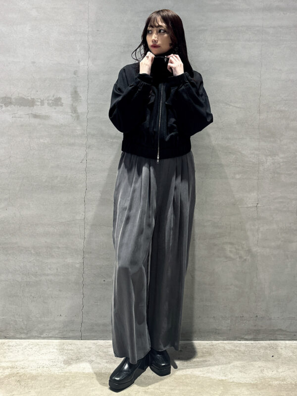 後ろを絞ってシルエットを変える着方と着こなしの幅が広いのが魅力です。