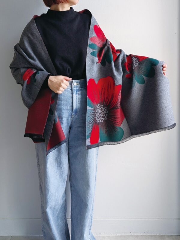 大胆な花柄でも、無地の部分とのバランスがよく配置されていて、