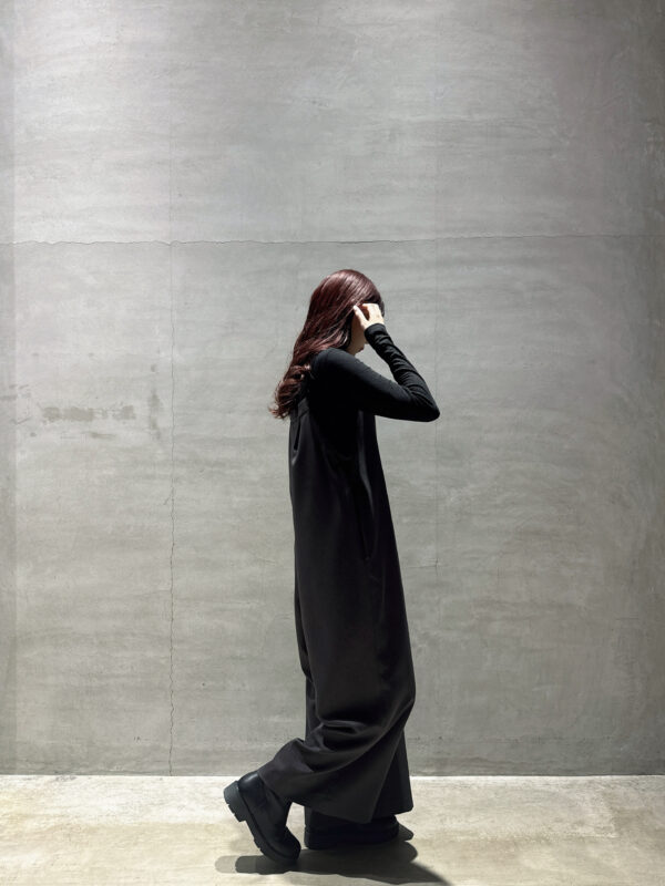 前後2wayで使えるサロペット。シルエットの美しさと着回しやさを