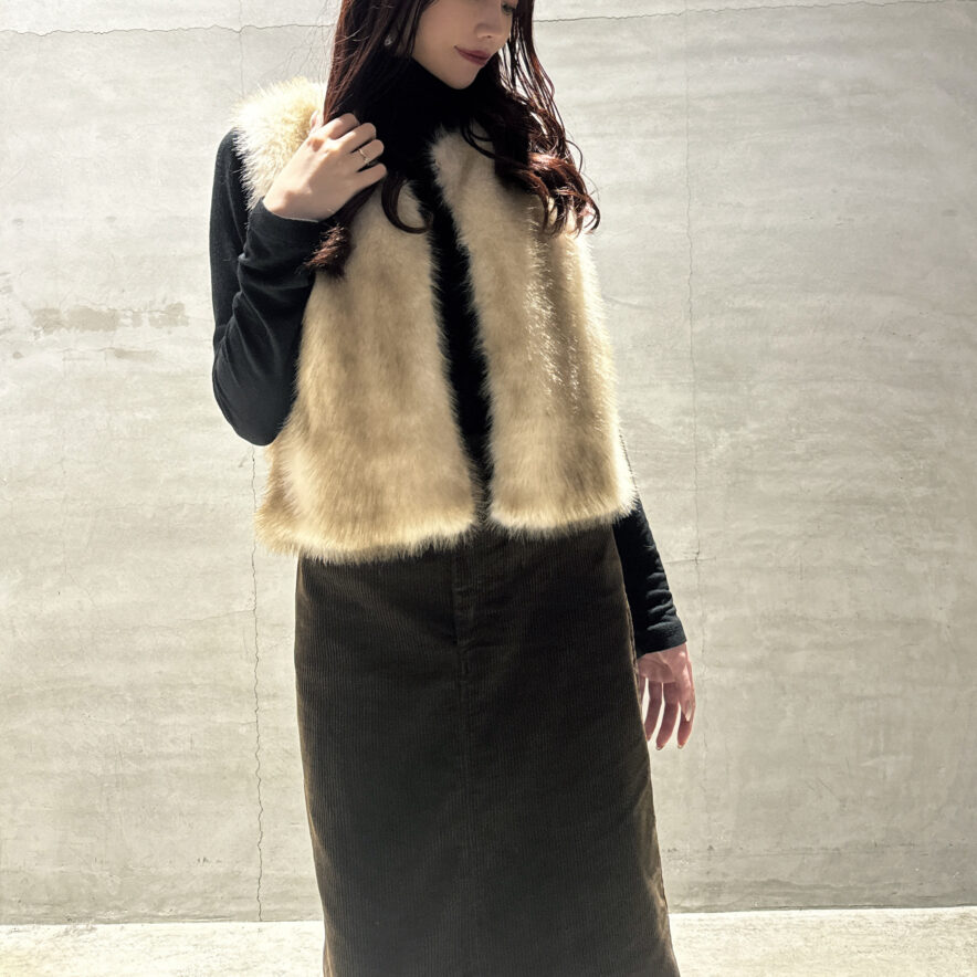毛足が長く、やわらかさとボリューム感のあるフェイクファーを使用。