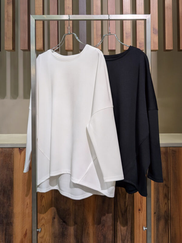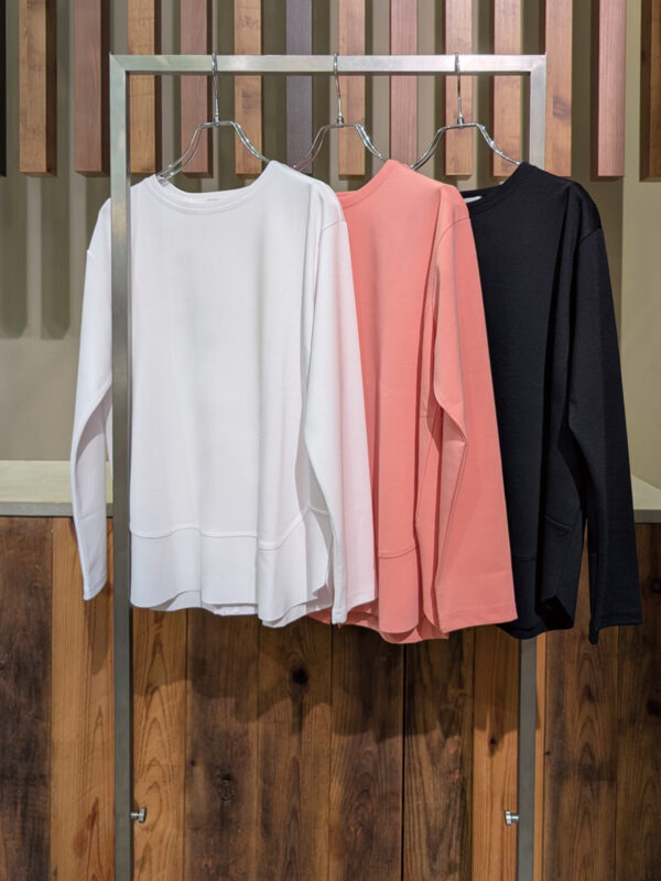 肌触りのよさと、楽なのにきれい見えるシルエットです。