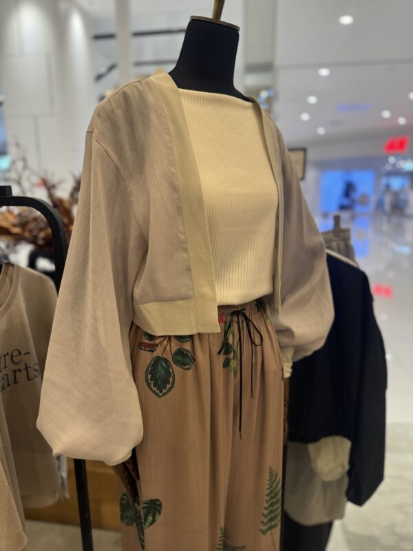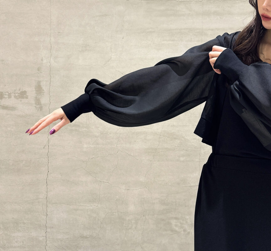 軽さのある素材感と立体的な袖デザインが合わさる事で着るだけで雰囲気を作ってくれます。
