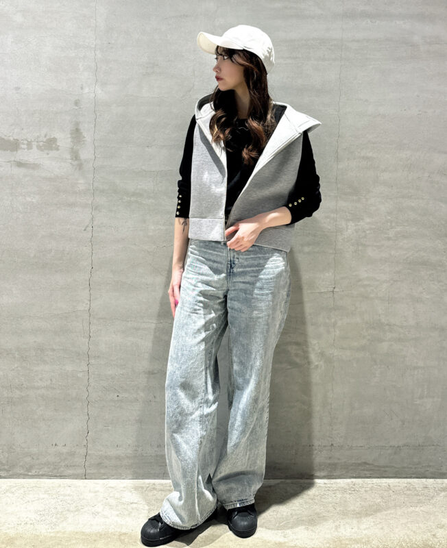 ワイドシルエットのボトムとも相性が良く自然と全体のシルエットにメリハリが生まれます。