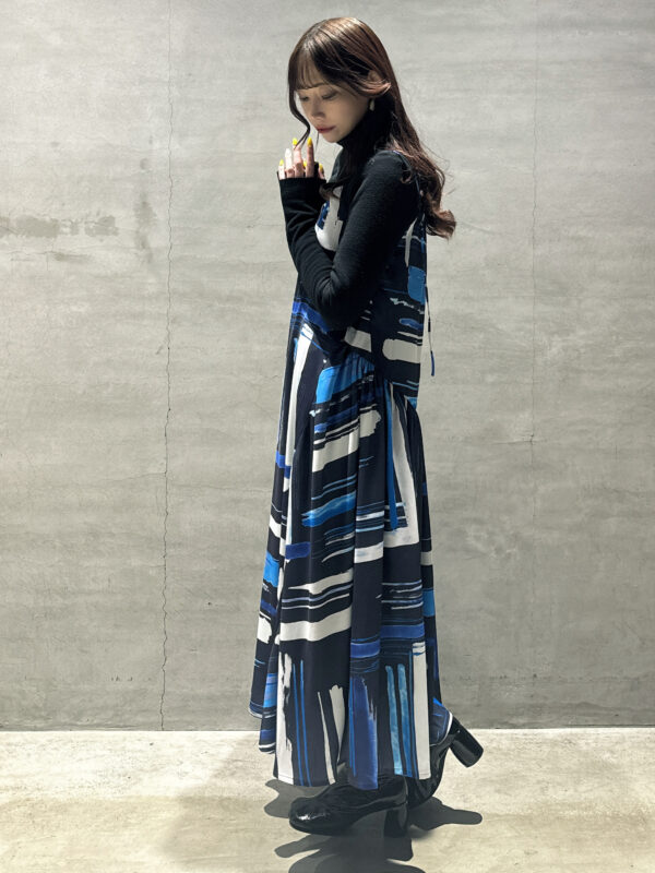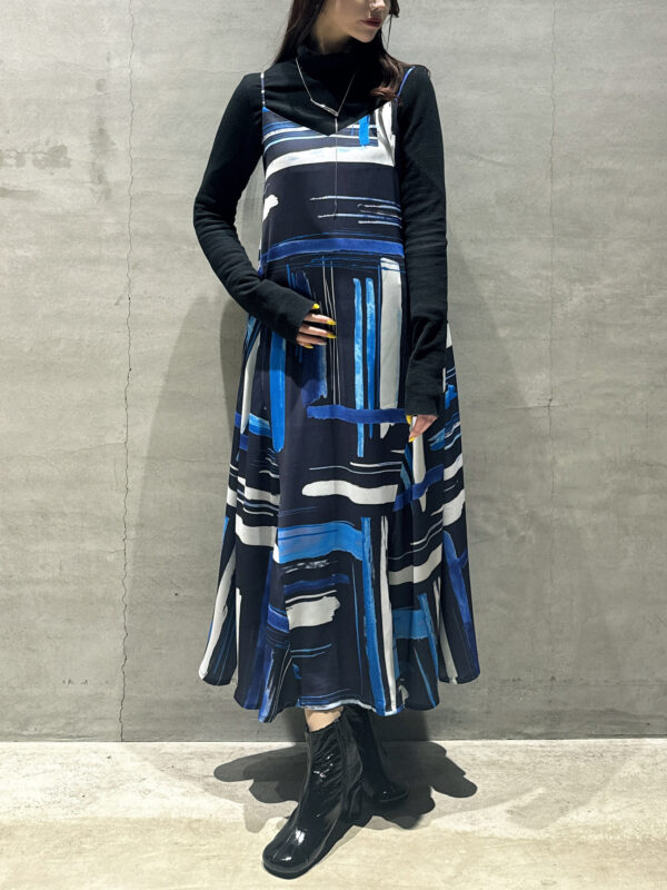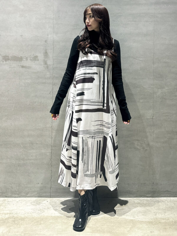 抽象的なブラシストローク柄が印象的なキャミワンピです♪