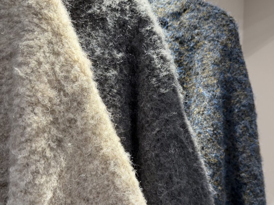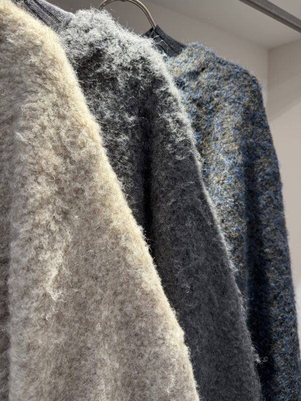 (ブラックのカーディガンのみ青、オレンジ、グレーの3色の糸が使用されています☺️🧵)