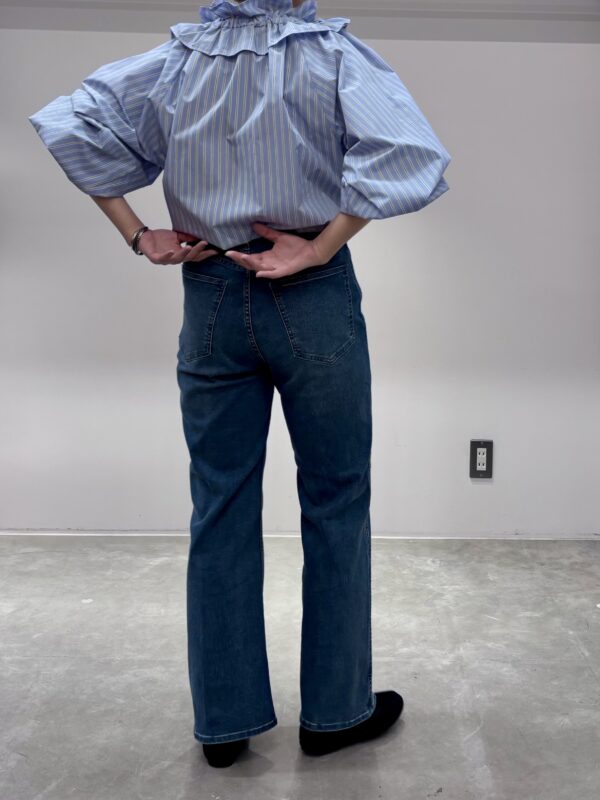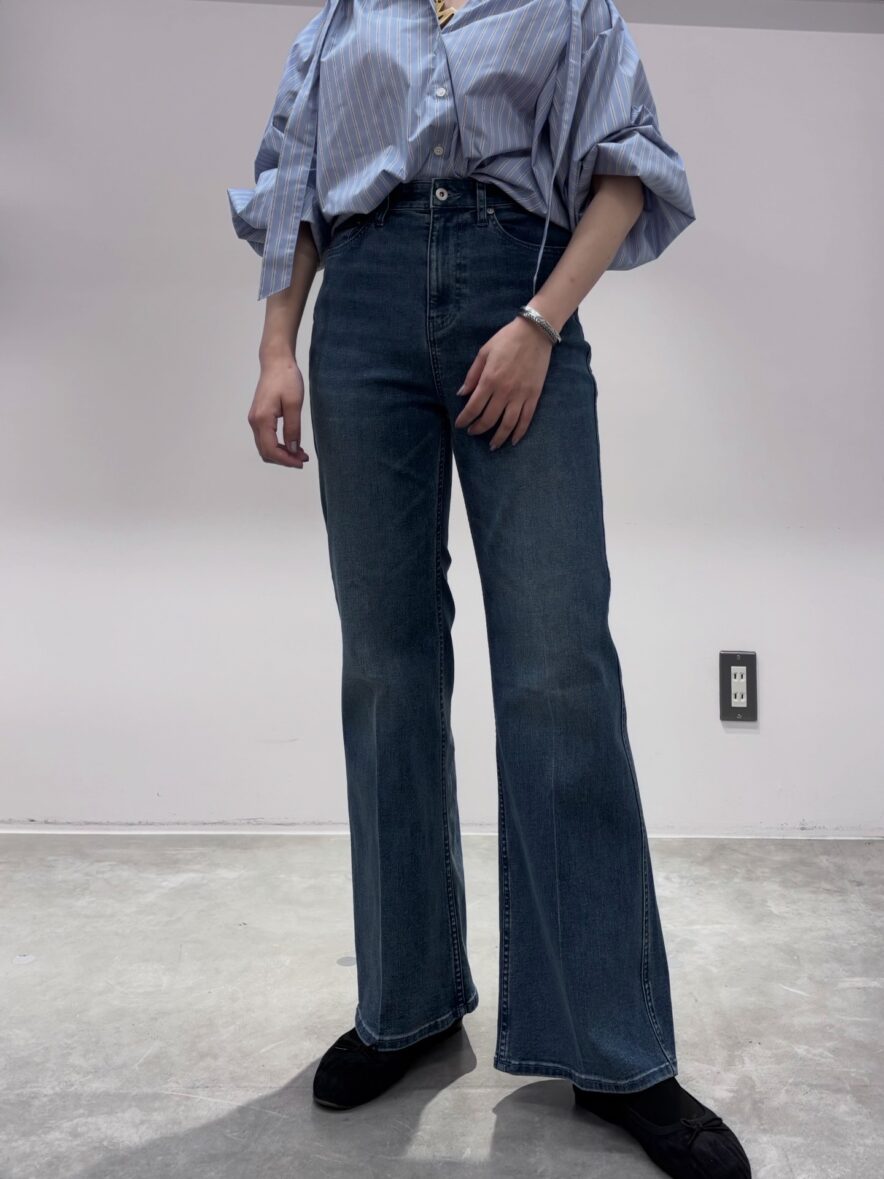 フレアデニムですが、フレアすぎず癖が少なめ。