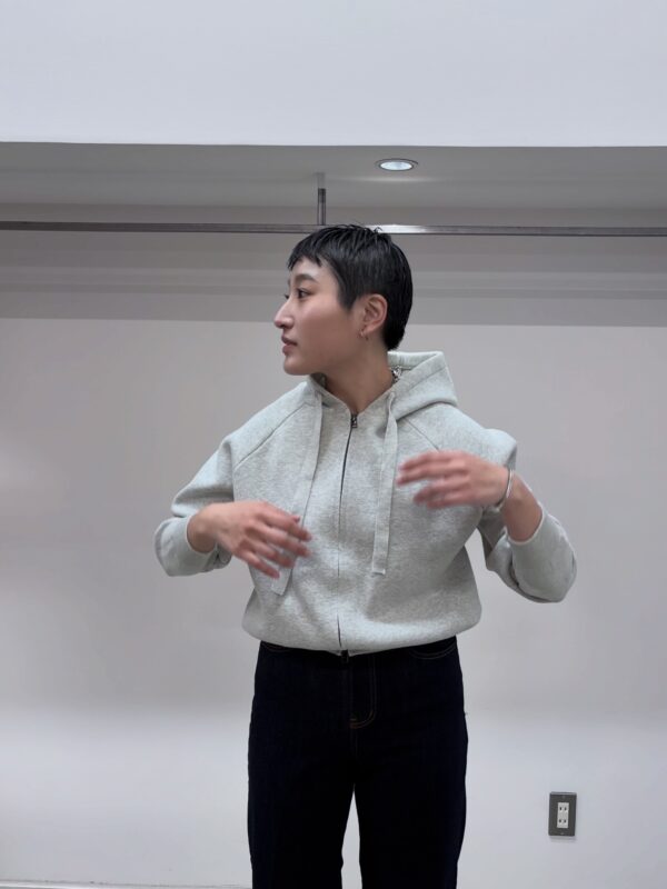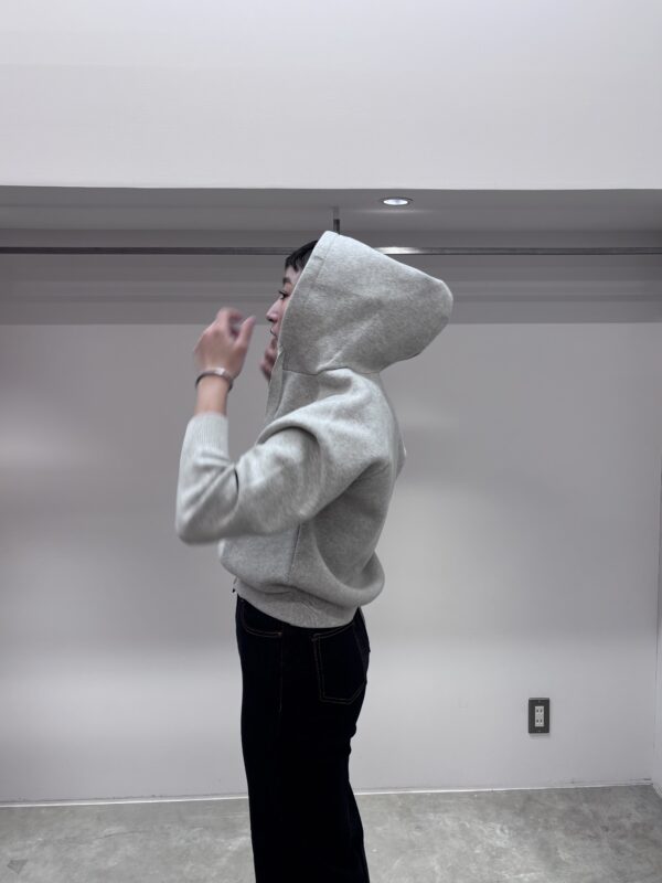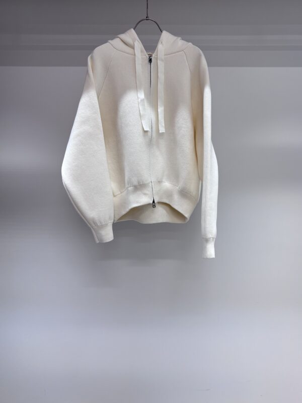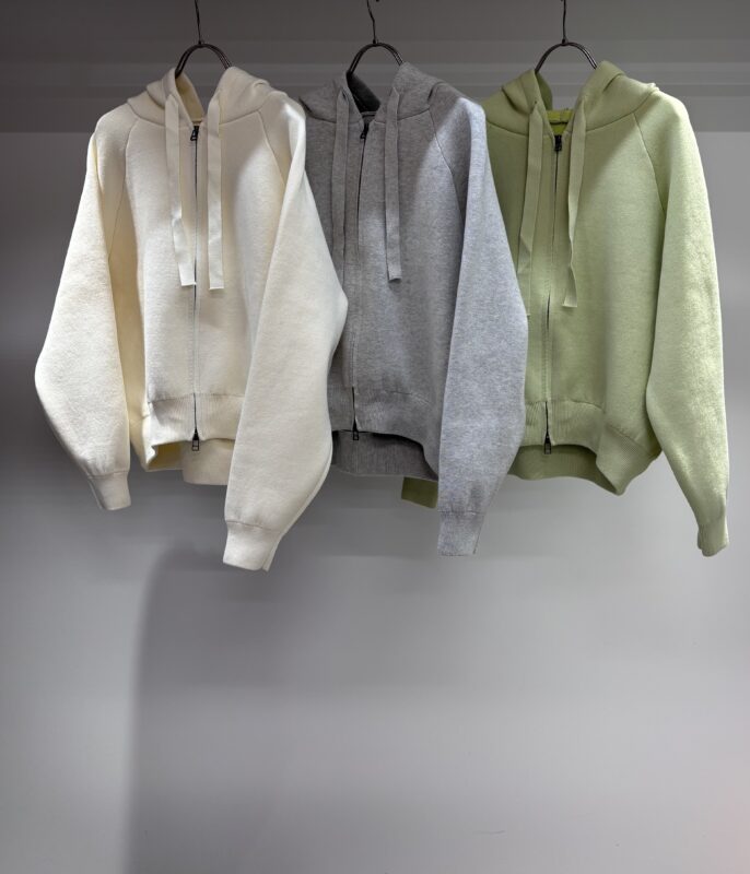 ニット生地のジップアップフーディー。