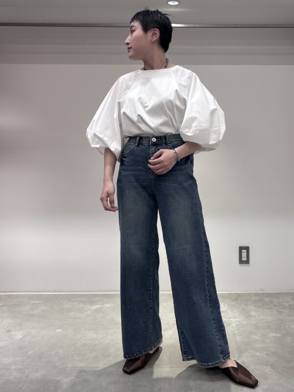 デニムやスカート、お好みのボトムと合わせるだけで華やかになります。