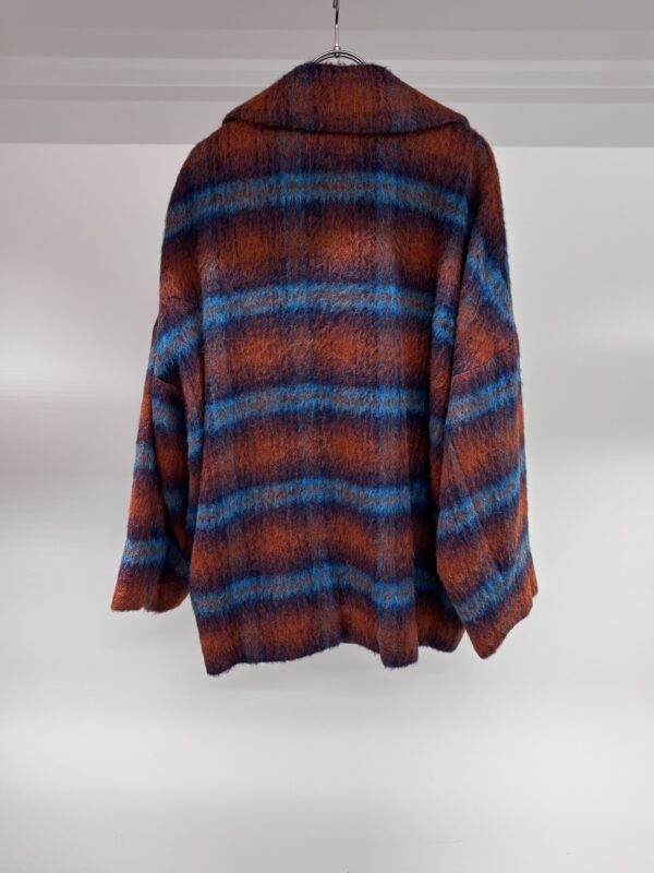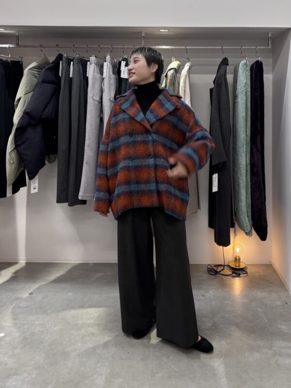 毛、アクリル、モヘヤの混紡生地なので、表面はフワッとした質感。