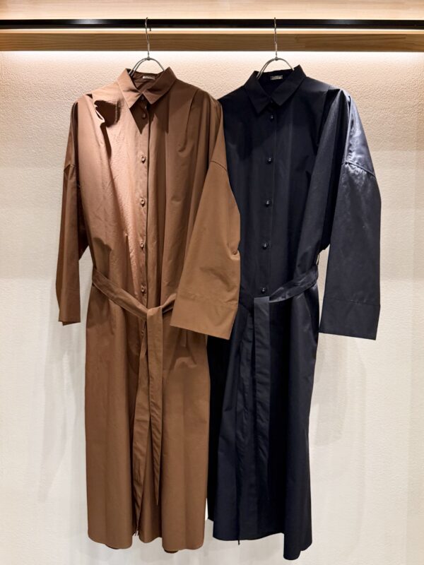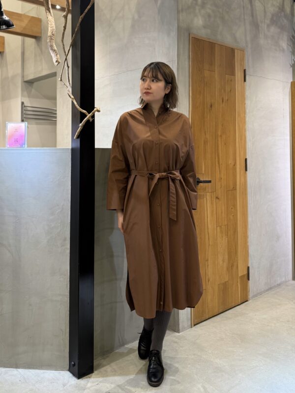 前を閉じてゆるっとウエストマークすればラフすぎない大人バランスのシャツワンピに!