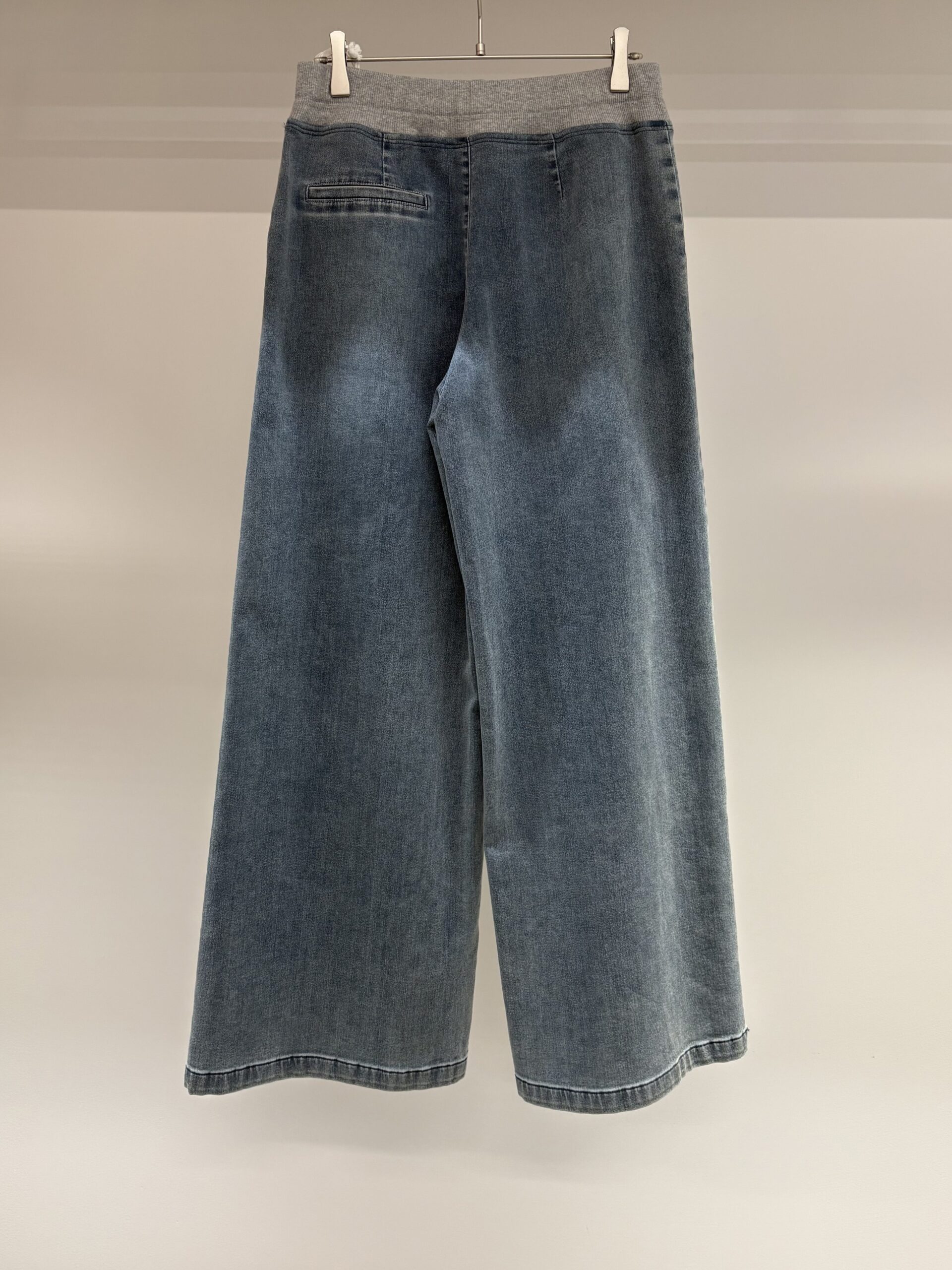 ポケットの切り替えがシンプルでデニムというより、ワイドパンツの感覚で、きれいめなお洋服に合わせやすいです🌸ウエストがゴムになっていて楽々♪