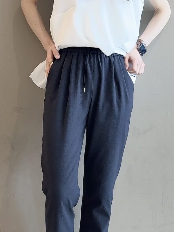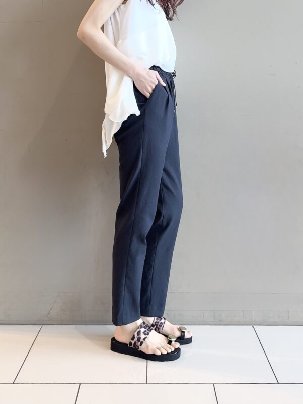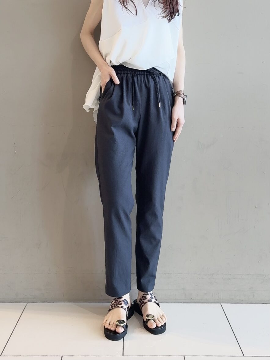 裾にかけて徐々にキュッとしまったテーパード。