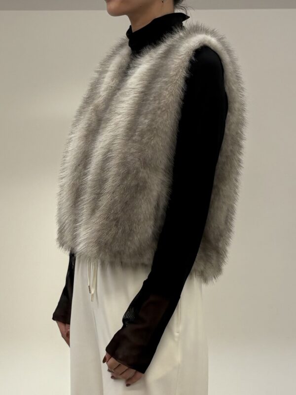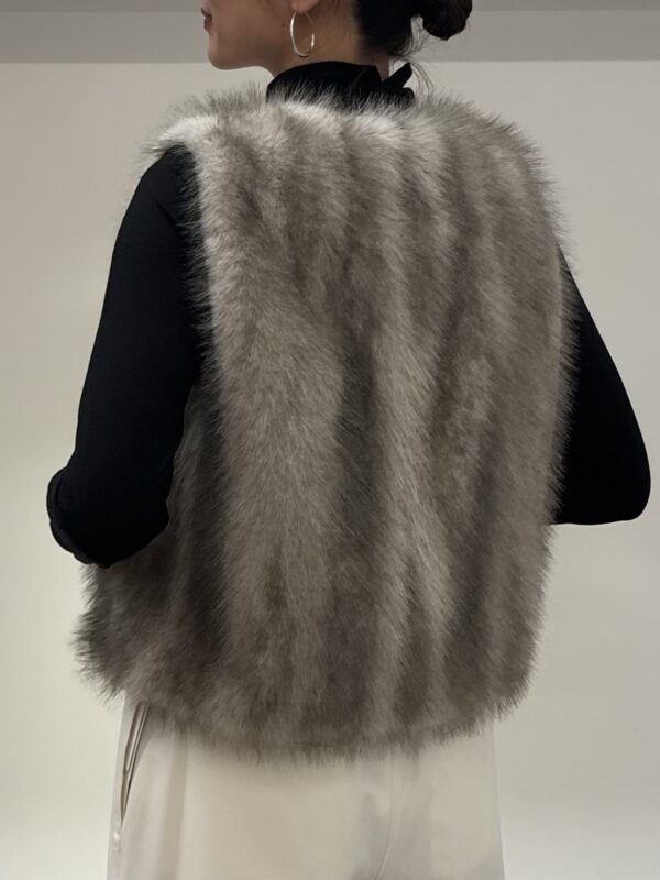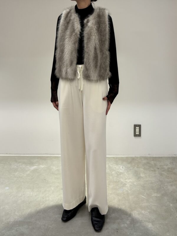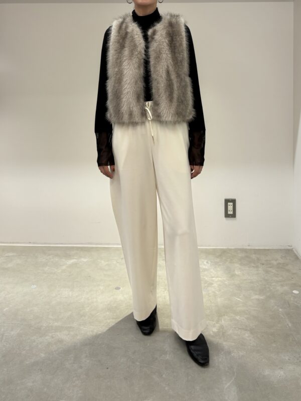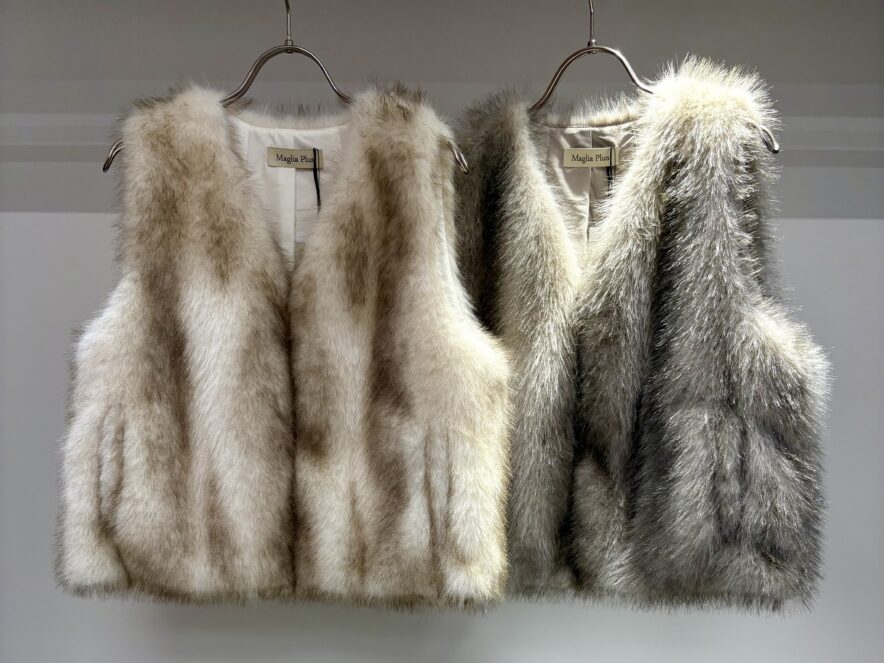 インナーはシンプルなカットソー、これからだとニットなどに合わせるだけでコーディネートをグッとワンランクUP⤴︎ ファーの漂う高級感と相まって、羽織るだけでコーデが映えます✨