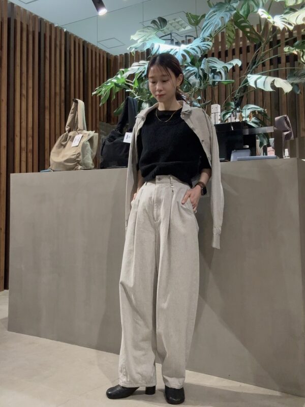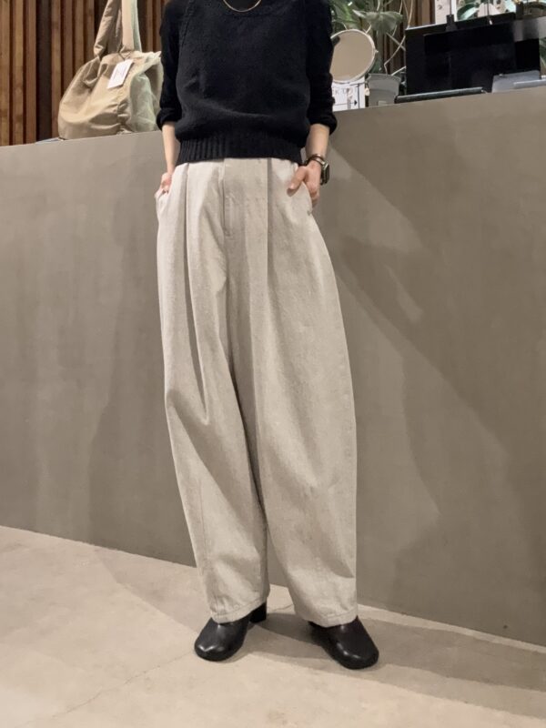 パンツはコクーンシルエットがしっかりと出る。