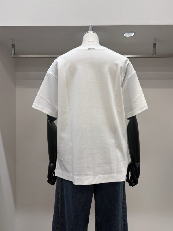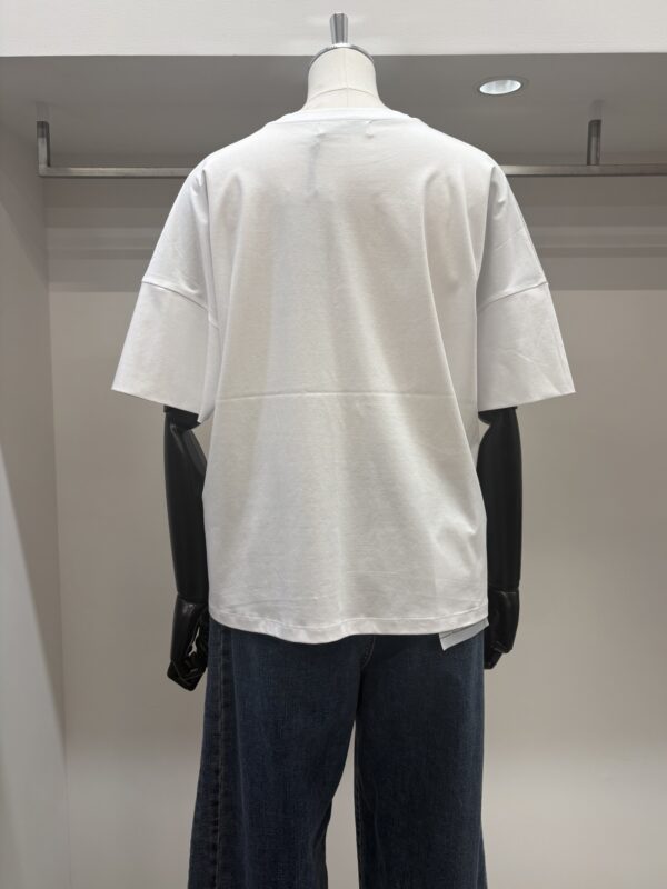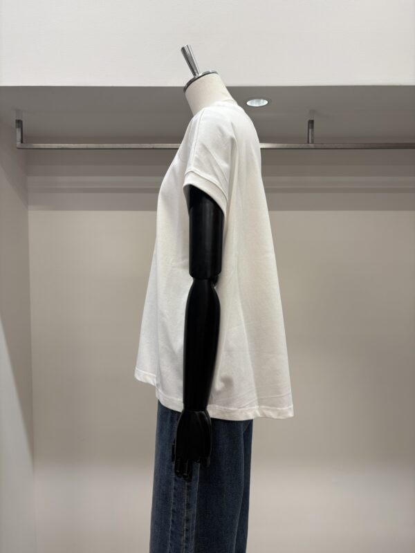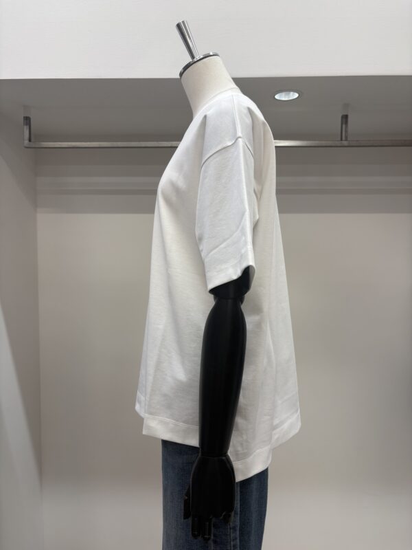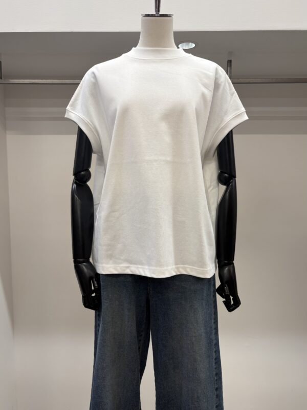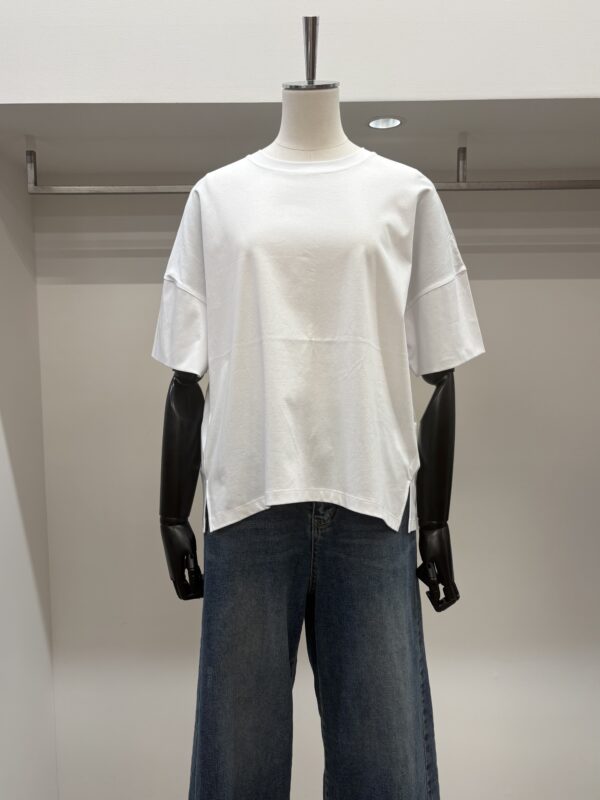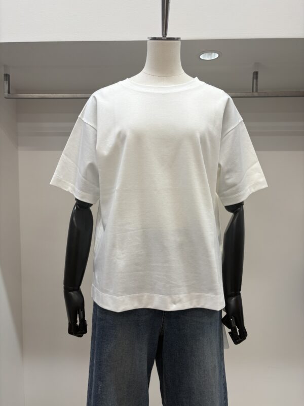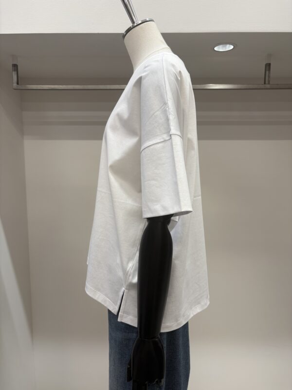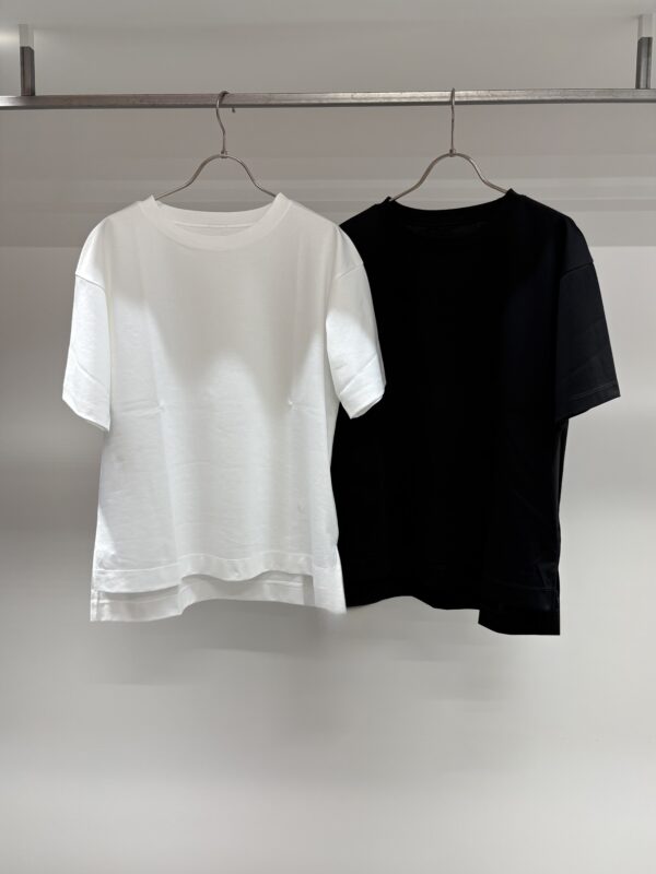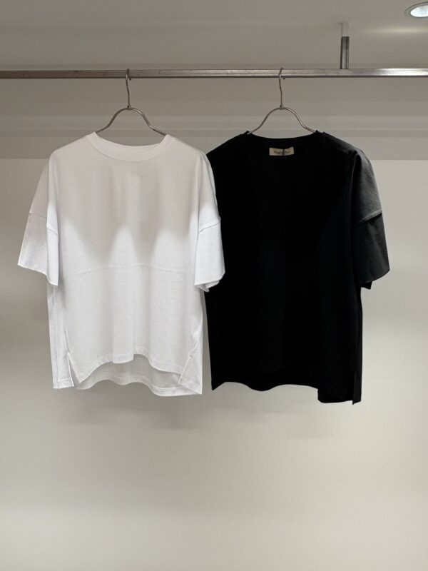 なんといってもコットン100%なのに、とてもシルキーな肌触り‼︎袖端の縫い目がなく、Tシャツというより、ブラウスのような感覚で着れるTシャツです。