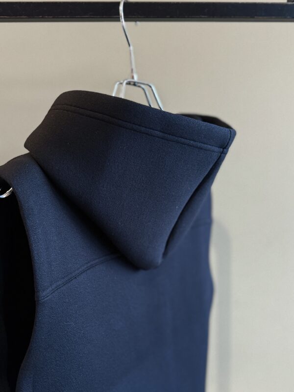 敢えてハリのあるジャージー素材により、フードの立たせ方や、身幅の見え方が絶妙です。