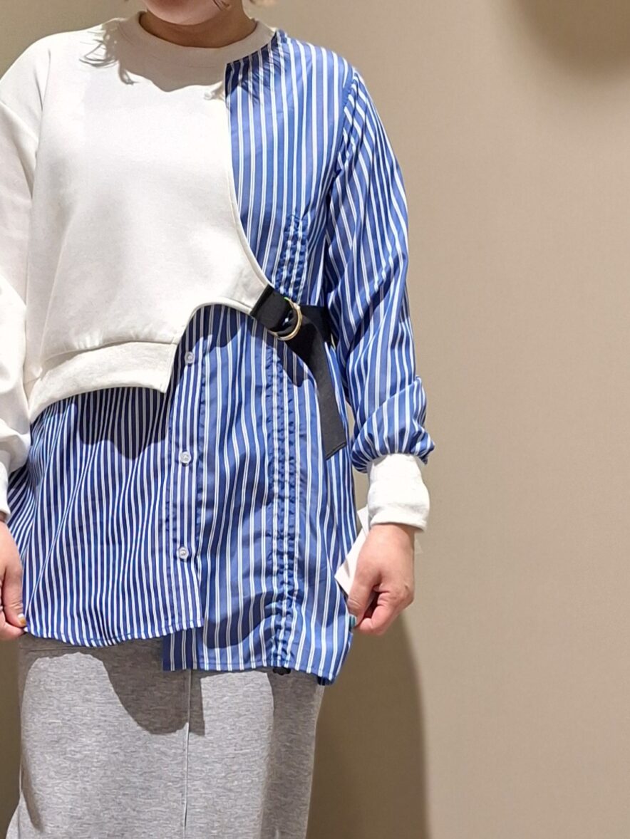 そんなRISLEYから入荷したのが、スエットとストライプシャツがドッキングしたトップスです。