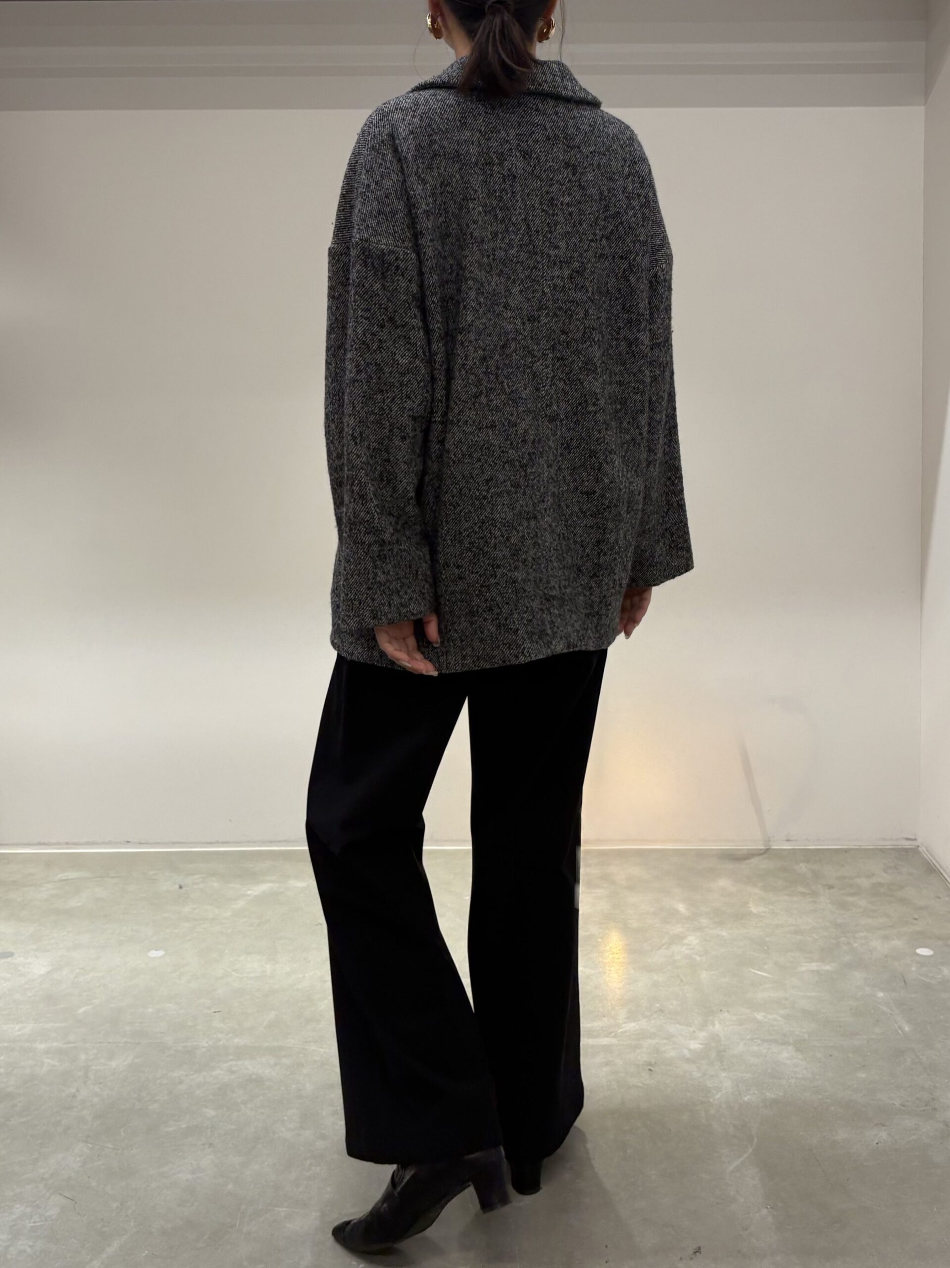 身幅や腕周りもゆったりしているので厚手のニットの上からでもサッと羽織っていただけます☝️